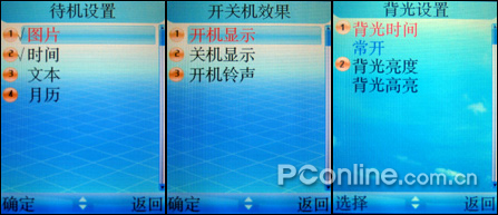 待机设置上A668和之前的几款A系列机型基本一致,支持图片、时间、文本和月历等桌面显示选项,支持个性化开关机的显示画面设置。同时还提供背光时间和亮度调节、屏保设置等选项,选项还是比较全面和丰富的。