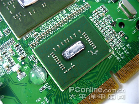 由于7600GS是基于原生PCI-E接口芯片组,因此必须借助这颗BR02 HSI桥接芯片完全其从PCI-E到AGP 8X的转换过程。