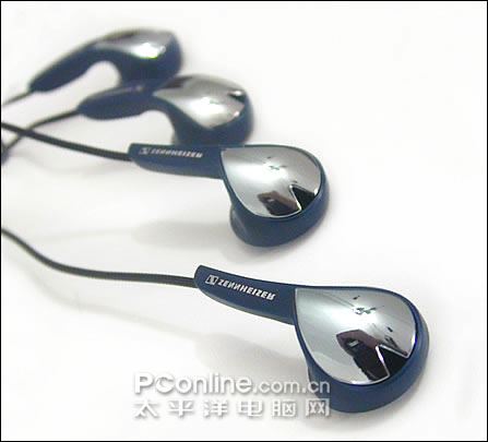 MX51/MXL51的外形也相当的前卫,整个耳塞采用了深蓝色的塑料材质,腔体的背面是一块类似心形的镜面镀铬塑料,非常抢眼。入耳部分为正圆形,采用了金属隔网。整个耳塞都充满了不规则的曲线,笛管部分也有一定的弧度,唯一规矩一点的只有笛管背面那个经典的森海塞尔标识了。左边耳塞还在笛管上有一个圆点的突起,让用户不用看左右标志也能通过触感来加以区分。