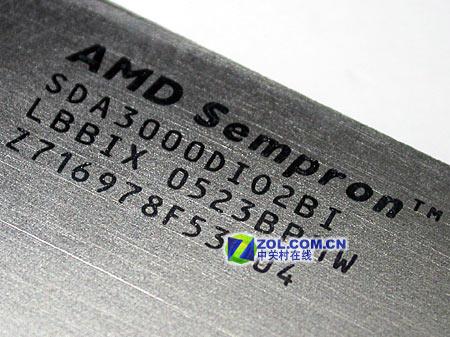 此颗CPU的产品编号从上到下依次为:SDA3000DIO2BI LBBIX 0523BPMW,其中“SDA”表示Sempron处理器,“3000”表示PR值为3000+,“D”表示采用Socket 939 OPGA封装,“I”表示工作电压为1.4V,“O”表示最高温度为69°,“2”表示二级缓存L2为128KB,“BI”则表示采用D0步进值。
