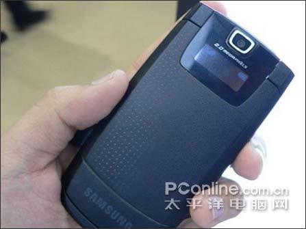 从D838的外型设计来看,该机延续了三星D系列手机简约和大气的特色,拥有硬朗的线条轮廓和轻薄手机体积。三围体积为103×54×9.9mm,而重量更是被很好的控制在90克左右,握在手里手感相当好。材质方面,D838的外壳采用了仿金属材质的涂层,外加经过细腻的磨砂处理,很好的提升了手机的档次。
