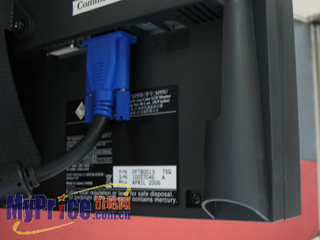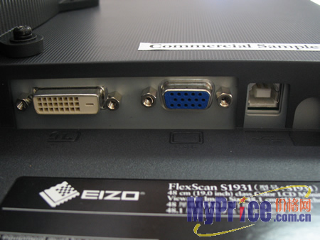 S1931设置了D-Sub和DVI-D双信号输入接口以及一个USB接口。在显示器启动时会自动检测输入信号的类型,以便完成简便的信号转换。只是由于接口紧贴机身后部面板,在安装或卸下插头时,手指对螺丝的操作会有所不便。