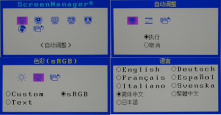 S1931随机附带了ScreenManager Pro软件,它提供了3种细致对比度模式供用户选择,针对不同应用提供最佳的显示效果,包括文本模式、sRGB模式、自定模式等。另外可选USB 2.0上行接口连接PC主机,配合ScreenManager Pro软件根据不同应用自动分配显示模式。