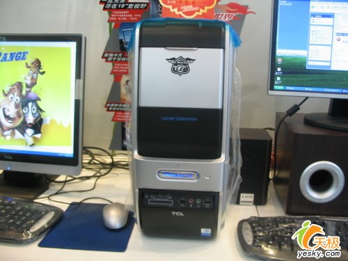 TCL海盗8856采用的是Pentium D廉价的805处理器(2.66GHz、2M高速二级缓存,800MHz前端系统总线),512MB的DDR2内存,160G SATA硬盘(8兆缓存),显卡方面,配有的是nVIDIA GeForce 6200 LE显卡,256MB显存,combo光驱,多媒体键盘光电鼠标,机器采用19寸宽屏液晶显示器,亮度达到300流明,对比度更是达到500:1,5ms响应速度,显示图象色彩逼真艳丽。