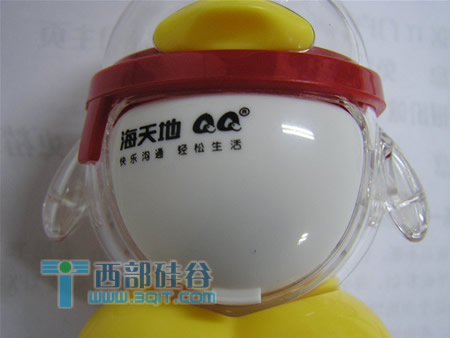 这次我们拿到的是这款QQ公仔,透明的外壳显得晶莹剔透,红色的围巾更是为其增添几份亮点。