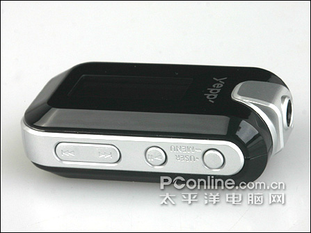 机身底部有一块硬质的防尘板覆盖着的是USB插槽,插槽上方还有一个不显眼的RESET按键孔。机顶除了突出的耳机输出插孔外,旁边还是挂绳孔的位置。