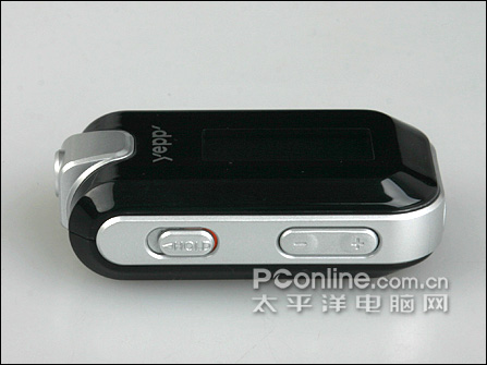 机身左侧只有两个按键,接近顶部的为滑动式的HOLD键,下面的是联体的音量调节键,该按键在功能的选择时,也负责的光标的上下、左右移动。总的来说,由于机身尺寸较小,按键的排布比较紧密,面积也略微偏小,好在适中的弹性,并不会难倒女性的纤纤玉手。