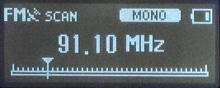 FM收音支持手动和自动调频,自动调频具有高、中、低三级灵敏度调节,接收波段覆盖76-108MHz,最多可实现20个预设电台的储存。收音效果不错,虽说依然难以避免走动时会出现杂讯,但尚在可以接受的范围。