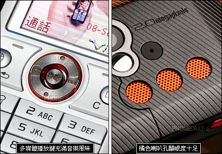K618i 共有两种颜色,分别是摇滚黑以及嘻哈白,但目前只有摇滚黑可供选择,至于嘻哈白则是一个月之后才会上市。K618i 是 K610i 的接班人,但是两款手机除了在尺寸方面相近之外,在造型上却有着完全不同的风格。K618i 虽然不是 Walkman 系列手机,却拥有和 W810i 设计相同的多媒体播放键,搭配橘色的按键底色,充满十足的音乐风味,同时也让使用者操作 MP3 的方便性大增。