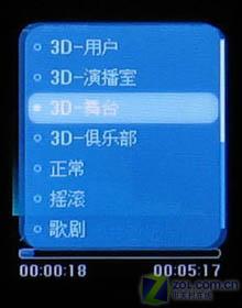 另外,T9支持12种预置音效和1种用户自定义音效。预置音效包括正常、摇滚、歌剧、舞厅、爵士、民歌、节奏及布鲁斯、古典和四种3D音效——3D-用户、3D-演播室、3D-舞台和3D-俱乐部,这也是T9音效的特色所在;另一个特色音效是“街道模式”,这是为了应付嘈杂的周边环境而设计的,开启后效果相当显著。