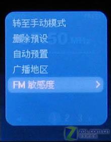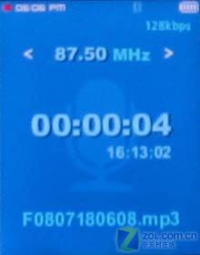 支持76-108MHz的FM收音功能。支持自动预置功能(即自动搜索),笔者在高敏感度模式下在87.5MHz-108MHz频段中共搜得17个频道,其中14个非常清晰,3个稍有杂音,无任何空白频道!这个结果十分令人满意。