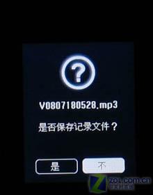 笔者简单试用了一下T9的录音效果,清晰度十分令人满意。T9录音结束后会自动提示是否即使收听录音结果,随后提示是否储存录音文件为MP3格式文件,这两个设置都相当的人性化。