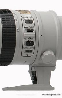 刚拿到这支“白色”的VR镜头,第一个感觉就是这支镜头有着纤细的身材(黑色的让人感到更加细),没有任何多余的部分,镜头的分层明显,白色的喷漆和黑色的橡胶搭配确实有点竹子的感觉。所以我们也就不难理解为什么那么多人喜欢管它叫“小竹炮”或“竹节虫”。 作为尼康“超声波钢炮”瘦身的产物,镜身采用轻量的铝镁合金制造,小竹炮比AF-S 80—200mm F2.8 ED IF-ED一下轻了155克,可谓彻底的减重。整体镜身上的喷涂材料和之前的产品相比颗粒更加细腻,触感变得润滑,但反而让人有了单薄的感觉。镜头的超声波对焦距离显示位于镜头的前端,面积较校给观察使用制造了一些的困难;镜头的中间VR-Vibration Reduction被显著突出——毕竟这是这支镜头最不同于之前产品的地方。Nikkor ED的金色标示在镜头的下端,不仅清楚的表明了镜头的身份,在外观上也颇显档次。遮光罩的设计在尼康的镜头群中显得十分独特——修长且棱角分明,并在遮光罩的侧面配有遮光罩锁定按键,安装拆卸便利。