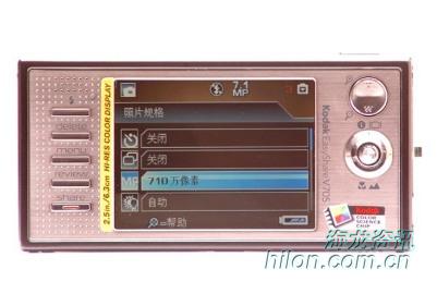 v750采用全金属机身外壳,采用磨沙质感的金属涂层,外壳的质感和细节做工非常到位,搭配上修长的机身,蕴涵着一种高贵典雅的气质,可以看出柯达对V系列的外观充满信心。20mm的机身厚度以及长条形的机身设计,101mm的长度在目前时尚数码中也算是佼佼者了。