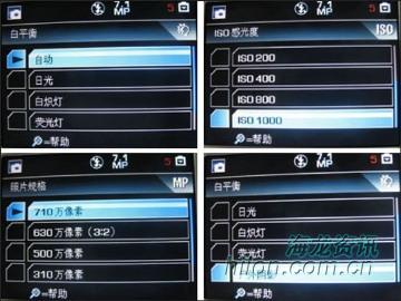V705的菜单界面采用柯达以往家用机的传统菜单风格。采用纵向排序设计,因此菜单界面的选项比较多,一共分成四页,四页菜单基本上控制了相机的所有拍摄设定和图像设定,而如果要对第二页或者第三页的功能进行设定,选择起来稍微有点麻烦。配备了常用的几项拍摄设置,如ISO感光度,色彩模式,白平衡等等。而柯达原有的几项特色功能,如方向传感器,收藏夹等等也一应俱全。