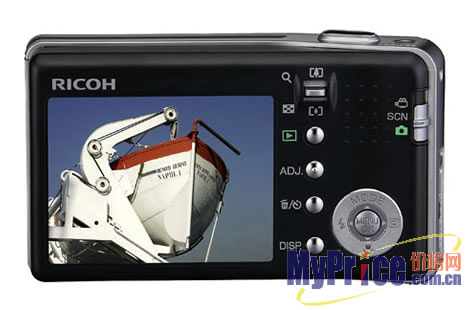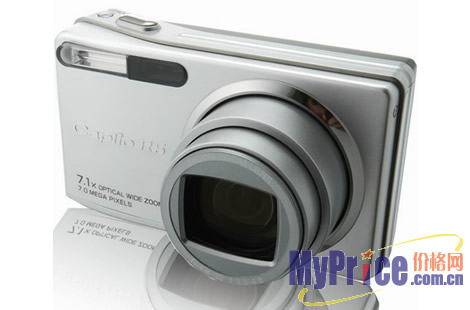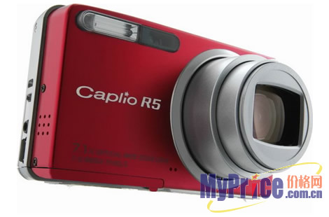 外观方面,理光 Caplio R5在延续了R系列实用和便携的基础上,增加了机身的弧度,手持感更加贴切,也更具时尚感,机身整体感觉更轻更细。在纤巧的机身下理光R5同时具有了时下较强的28mm广角和7.1倍的大变焦功能。不论从全景还是到远摄、甚至在室内阴暗光线下的主体摄影都能给人深刻印象的摄影效果。更加利于拍摄人像和大的场景。除了拥有7.1倍光学变焦及3.6倍数码变焦外, 更新增了34.2倍无失真自动变焦, 相当于 960 mm的高倍变焦效果, 在此功能下相机会自动调整图像大小, 但仍保持高品质的图像质量。背后配备23万像素的 2.5 寸高亮LCD, 提供170度更宽的视角, 无论由高角度或低角度进行拍摄亦同样方便, “高亮丽”显示即使是在阳光下也能轻易取景及回放。
