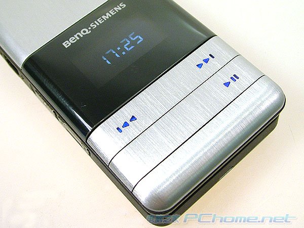在外屏的下方还有三个蓝色背光的音乐播放控制按键,如今MP3播放功能逐渐成为手机的一项标配功能,EF71自然也不例外。除了可以通过面板上的三个控制按键控制MP3的播放外,外屏还将显示MP3音乐播放的相关信息,就像使用MP3随身听一样简洁明了。