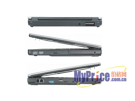接口方面,有3个USB 2.0、1个VGA、RJ-11、RJ-45、耳机/麦克风和1个ExpressCard插槽,并提供集成10/100以太网卡。
