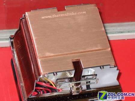 纯铜底座非常厚实,并且打磨精细,边缘还刻有Tt的英文名全称。表面采用了细拉丝工艺,能够与CPU表面的金属细纹更紧密地结合,并且防止打滑。