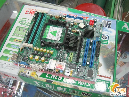 接口部分很有特点,抛去了现在不常用的LPT打印口和COM口, 换成了VGA和DVI接口,可以连接任何显示器,DVI接口一般在主板上出现并不常见,所以七彩虹这款主板更加体现人性化的一面。USB 2.0接口 和网卡以及8声道音频接口一应俱全。