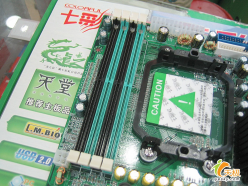 主板上的四条DDR 2内存插槽更是提供了双通道的模式,最大支持4GB内存容量。2个IED接口支持4块 PATA硬盘,另外还南桥提供了2组SATA接口,可以支持2块SATA硬盘。除了集成显卡之外,用户还可以配备一块外接的PCI-E X16显卡。1个PCI-E X1插槽和2个PCI插槽使得扩展性能大大加强。
