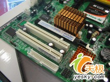 功能方面:主板集成了RTL8100c百兆网络芯片,ALC655 5.1声道的音频输出端子,充分满足普通家庭、网吧的简单需要。扩展槽提供了1条PCI-Express×16和2条传统PCI。由于没有提供额外的PCI-Express,从安全的角度考虑,图形卡扩展槽贴上特别注意的事项,标注其功能的专属。南桥MCP410提供了2组SATA2、2组PATA和10组USB2.0,拥有SATA RAID的功能。内存插槽4条DIMMs双色搭配,DDR2 800MHz工作频率上限,数量上达到C51G的高配,容量最高8GB空间。