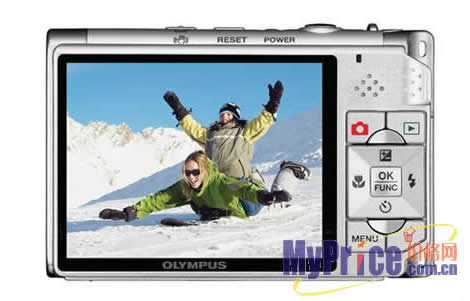 除了μ系列产品一贯的全天候机身卖点之外,μ730的另一大卖点是配备了一款3英寸23万像素的大尺寸显示屏,给取景和浏览照片带来了方便。在其他配置方面,μ730没有多少突出的地方,采用的是逐渐流行的1/2.5英寸710万有效像素CCD和一支3倍光学变焦潜望镜式镜头。拥有ISO1600的高感光度,在300万像素下还可达ISO3200,配合电子防抖功能,能一定程度上减轻因手部抖动或被摄物体运动而导致的图像模糊。此外,μ730配置有智慧修正键功能,可在影像拍摄后一次性修正由手部抖动、曝光不足和红眼等原因造成的图像缺陷。