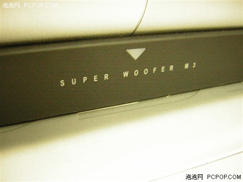 低音炮下端的机身上标明了“超级低音炮”的英文字样