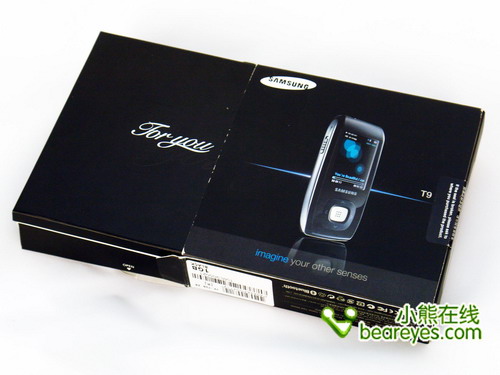 三星的每款手机都有着自己的一个颇为神秘的两字命名,如心机 SGH-X708等,这款三星T9也不例外,打开纸盒,取出内胆,艺术字体的双色For you字样跃入人眼。虽然不是中文,但也使得该机颇有文化底蕴。