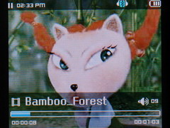 视频部分,这款三星T9支持其独有的视频格式svi,这种格式可以通过三星T9自带软件Samsung Media Studio5转换。画面还是很浏畅的,它可以全屏以20帧以上的速率播放影音文件,画面清晰,对字幕的显示也是很清晰的。