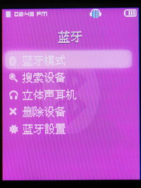 上图是三星T9的蓝牙部分主菜单。五个选项,用过蓝牙产品的朋友应该一看就明白。在这里简单说明一下,第一个蓝牙模式是使mp3在蓝牙与3.5mm耳机之间进行切换。