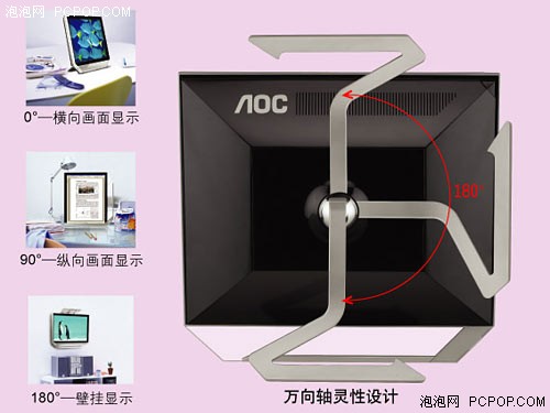 不愧为魔镜,AOC创新的灵活多变“万向轴”多功能支架设计,能使屏幕可竖直摆放、可悬挂、可随意旋转180度。