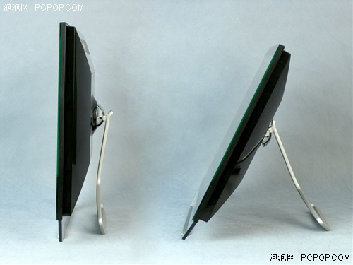 底座支架酷似“鱼钩”,采用金属底座让我们不必怀疑其支撑能力(“魔镜”199P+的机身重量有些沉哦)。机身背部正中间采用了罕见的“轴关节”,支架实现90度、180度就要靠它的本领了,实际使用中,摆动“轴”力度很柔和,不需要过多的力气。不得不叹服AOC强悍的设计能力。