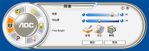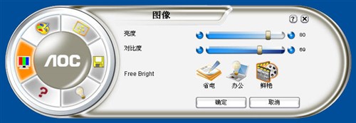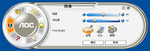 亮度、对比度调节是显示器最基本的应用,魔镜拥有的Free Bright可以一键实现“省电”、“办公”以及“鲜艳”三种模式(以上三副图片分别对应,亮度和对比度的数值都不一样),非常方便,当然,我们也可以自行调节到任何参数,以达到最舒适的显示效果。
