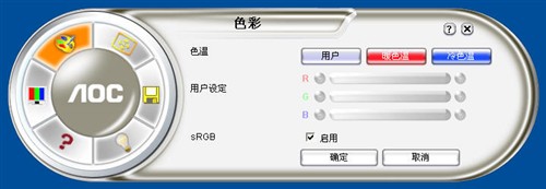 色彩方面预置了“用户”(自定义)、“暖色温”以及“冷色温”模式,方便切换。而时下流行的sRGB模式,魔镜也完整了保留了下来,在打印输出时可以排上用场。