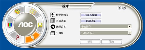 Smart OSD还提供“恢复初始值”功能,而自动调整功能只有在使用D-Sub接口时才需要使用。语言只有中文和英文两种,默认则是中文。分辩率这里可以实现调节。