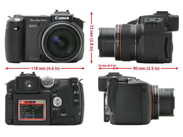 PowerShot Pro1的镜筒上设计了手动变焦环,配合与EF镜头上相同的USM超声波马达来驱动镜头高速变焦。为了方便取景和显示照片,PowerShot Pro1首次使用2英寸、23.5万像素大型高分辨率LCD,使得拍摄和浏览都更加清晰。它所使用的EVF(电子取景器)同样具备23.5万的高像素,使用中可以获得极佳的操作感。