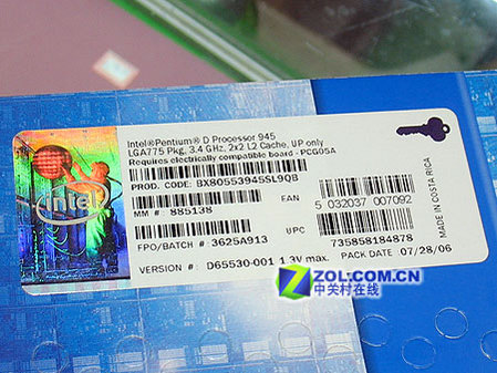 【图】Pentium D 945盒装处理器型号标签