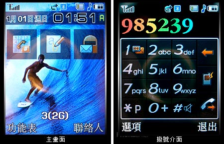 手机主画面跟一般 Samsung 手机不同,预设了三个功能大 Icon,分别是虚拟数字键、手写记事及讯息功能,都是以手指或触控笔操作的几项常用功能,十分贴心。
