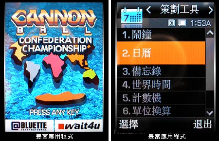 此外,手机亦增加因为多了手写输入而设的功能,包括可记录手绘图案的记事本,内建金山词霸中英文双向字典(仅限于中国、香港地区),更是上班、上学一族最爱的功能。
