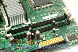 主板配有2条支持DDR2 667/533/400 MHz的DIMM插槽,最高支持4GB系统内存,内存部分的供电电路做工也非常精细,提高了内存工作的稳定性。独立的PCI-E 16X显卡插槽可以任意的扩展,还配有2个PCI插槽和一条PCI-Express 1X插槽。在磁盘接口方面,Intel这款D945GCL主板提供了4个SATA接口。