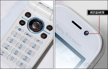 Z610i 风格有点偏向日系手机,跟之前的 Z 系列相比,手机按键虽承袭了基本按键配置,但也贴心的增加了上网、相机、快捷方式等三个功能键,让使用者可以快速进入相关功能,提升操作方便性。在听筒旁可看见 3G 副视讯镜头,维持着索爱副镜头低调的设计风格。