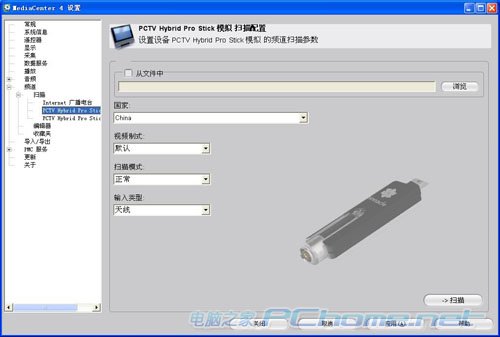 在装完驱动和应用软件后,需要先设置然后才可以看电视,详细的设置界面体现了品尼高在视频技术上的领先优势,在设置完毕后漂亮的界面让人耳目一新。在搜索到了几个频道后立刻截图。可惜啊PCHOME的电视信号差实在不能截出高质量的画面。
