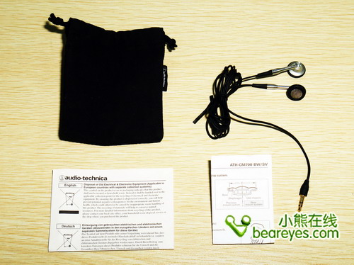 铁三角CM700包装内含绒布袋一个,说明书以及耳机一幅,相对于一些国产品牌,这款铁三角CM700表现的一般。但重在音质以及耳机的细节部分,我们来着重分析一下。
