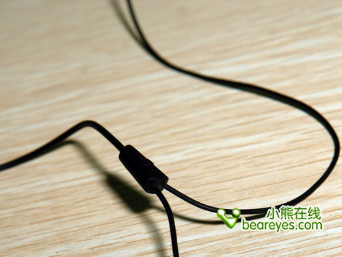 上图为产品Y形分线部分,这款产品听左右声道为等长设计,用户不必费力去把右声道绕到脖子后面去使用。Y形分线头有着三孔裸露,正中央印有铁三角的Logo。