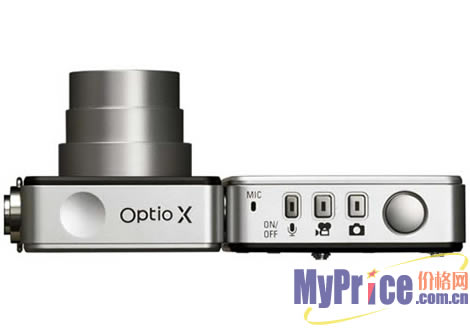 Optio X配备1/2.5英寸500万有效像素的CCD,3倍光学变焦smc宾得平移式镜头,最大光圈为F2.6-4.8,变焦范围相当于35mm相机的36-107mm ,使用了2.0英寸的大LCD。Optio X采用了最新研发的ASIC器件,可以获得更高品质的图片和更快的数据处理速度,所以Optio X的图像处理速度比宾得通常机型快1.5倍左右。