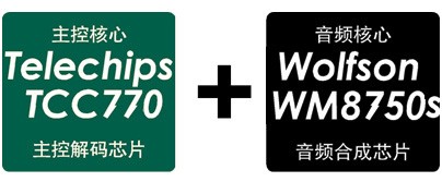 首先我们需要了解的是,第一代双核心设计的C150采用了韩国Telechips TCC760主控芯片,音频合成部分采用美国西格玛-德尔塔独立音频合成芯片,第二代双核心T19采用Telechips TCC760加Wolfson WM8750L音频合成芯片,而基于第三代双核心技术的T29,则采用更为优秀的Telechips TCC770主控加WM8750S音频合成芯片。