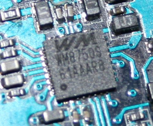 在音频合成方面,英国Wolfson公司优秀的音频合成芯片WM8750S对比上一代T19所采用的WM8750L并未有多少差异,同样优秀的WM8750S采用全无铅设计,更利于环保。WM8750S内部同样整合有Stone-3D硬件音效,具备硬件级的3D音效渲染,且可通过软件进行开启、调节与关闭。最新的QFN封装工艺,使得这款芯片只有5mm×5mm大小,彻底降低了其在T29内部PCB板的空间占用,为T29小巧的设计打下了基础。