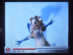 同样采用220×176解析度,但也许是由于屏幕尺寸比T19大了0.1英寸,使得视频播放过程中的颗粒感比较强,且屏幕亮度相对偏暗,不如T19那么艳丽。小编观看了产品内置的两段视频,《最终幻想7》由于影片本身细腻程度较高,且画面主要以白色调为主,总体效果还比较不错,只是画面不够流畅;而另一段《冰河时代》画面比较模糊,这可能与播放速度有关。
