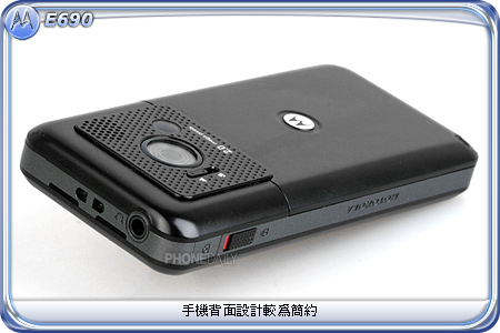 MOTO 为了增加 E690 的机身强度,除屏幕之外都是以金属材质打造,不但增加了手机的实用性与耐用性,同时也提升了手机的质感。E690 的机身经过了细腻的摩砂处理,让讨人厌的指纹和油污不容易沾染在手机上。手机的背面设计和正面同样简洁,200 万画素相机以及自拍镜位于一块突起的蜂窝状背盖上,虽然相当容易吸引人们关注的眼神,但也让手机背面的平整性打了点折扣。